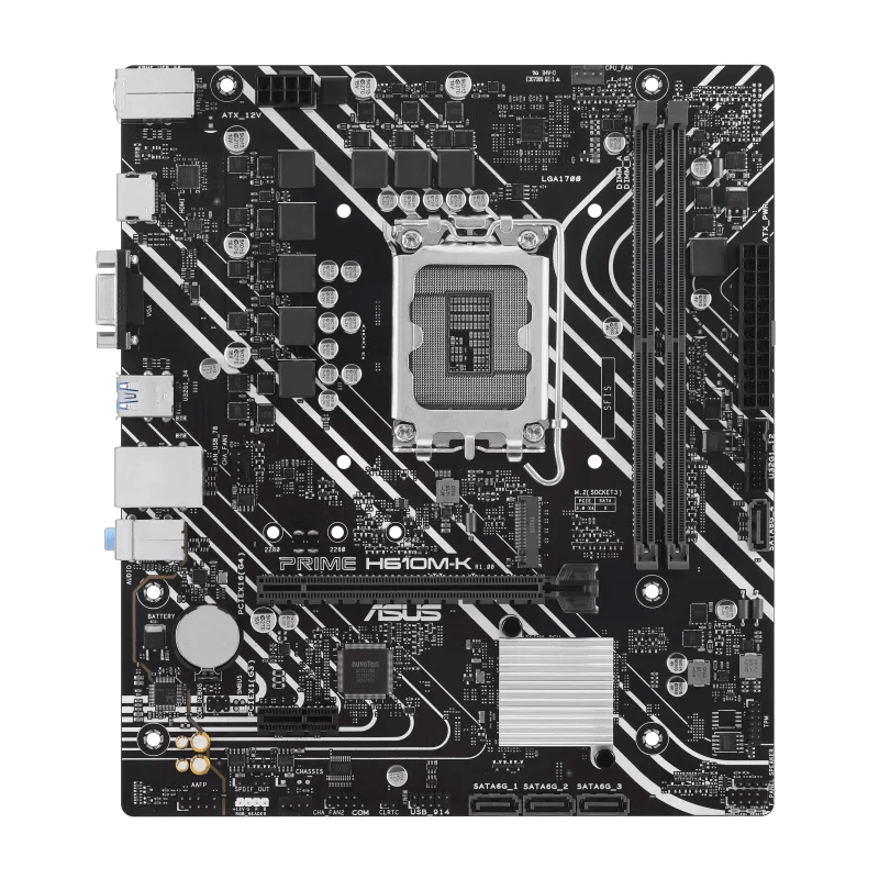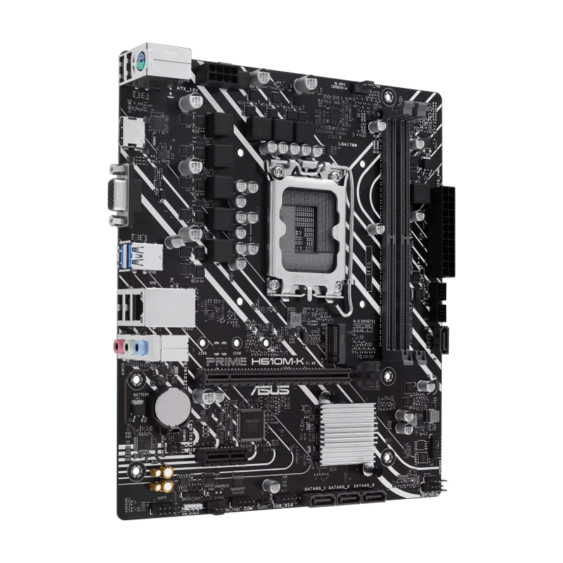 This motherboard features addressable ARGB lighting and support for next-gen DDR5 memory. Its micro-ATX layout includes PCIe 4.0 for high performance GPU compatibility and a reinforced M.2 slot for fast storage. With ASUS’s 5X Protection III features and robust VRM cooling design, it’s built for both stability and style.