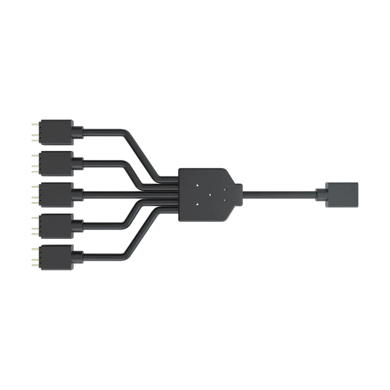 The Cooler Master ARGB 1-to-5 splitter cable allows gamers and PC enthusiasts to connect up to five addressable RGB fans from a single ARGB header. It ensures uniform, synchronized lighting for a stunning gaming rig.