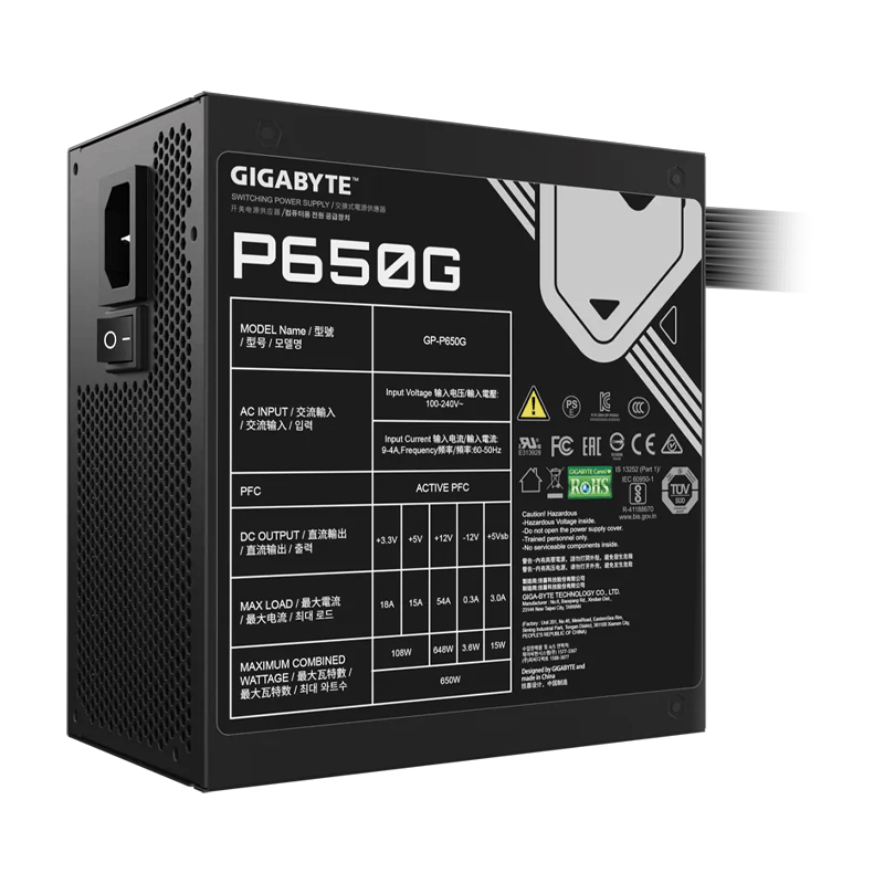 The Gigabyte GP-P650G 650W 80+ Gold Power Supply offers premium performance, silent operation, and high efficiency for gaming and professional systems. Certified with 80 Plus Gold efficiency, it ensures up to 90% power efficiency, reducing waste and maintaining stable voltage delivery.