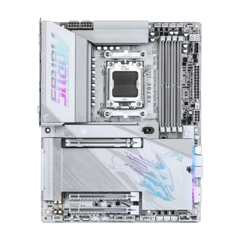 The GIGABYTE X870E AORUS PRO X3D ICE DDR5 motherboard is engineered to unlock the full potential of AMD Ryzen X3D processors. Powered by the advanced AMD X870E chipset, it provides a stable and high-performance platform for gamers, creators, and power users building next-generation AM5 systems.