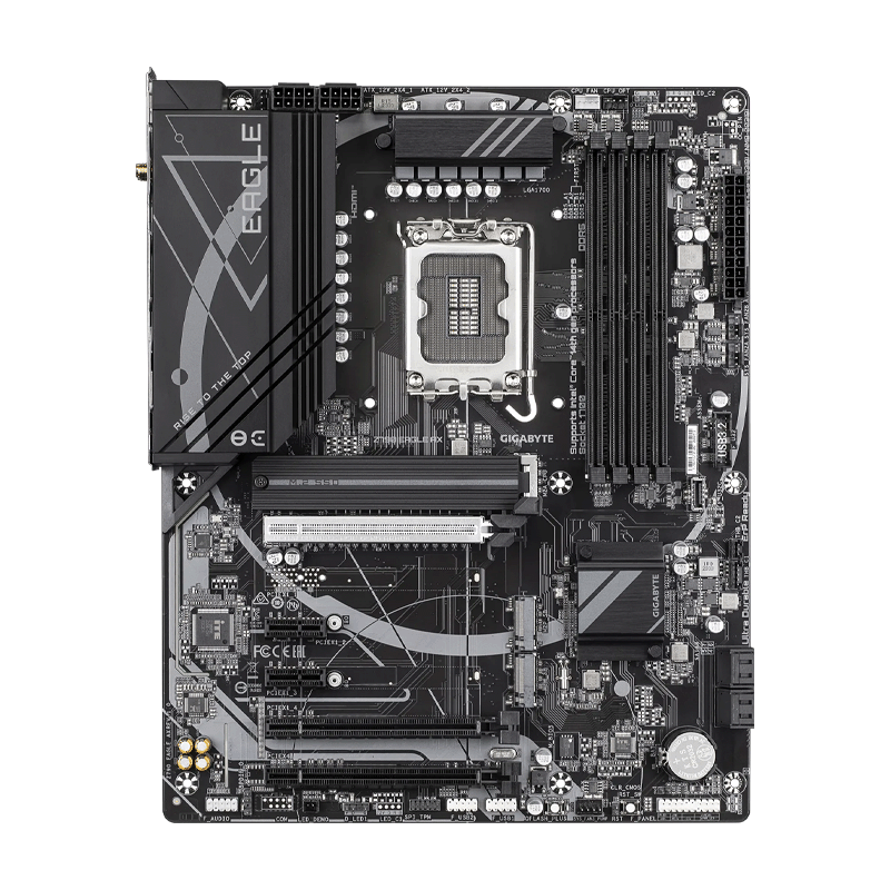 This motherboard supports DDR5 memory up to 192 GB, enabling faster data transfer and superior responsiveness. With PCIe 5.0 for next-gen GPUs, WiFi 6E, and 2.5 Gb Ethernet, the Z790 Eagle AX is built for stable, high-speed networking and expansion. It also includes multiple M.2 slots with thermal guards, ensuring optimal SSD performance and temperature management.