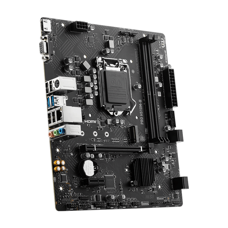 The MSI PRO H510M-B D4 motherboard is designed for reliable everyday performance and productivity. Built on the Intel H510 chipset, it supports 10th and 11th Gen Intel Core™, Pentium Gold, and Celeron processors with the LGA 1200 socket. Featuring dual-channel DDR4 memory up to 64 GB, it ensures smooth multitasking and stable operation.