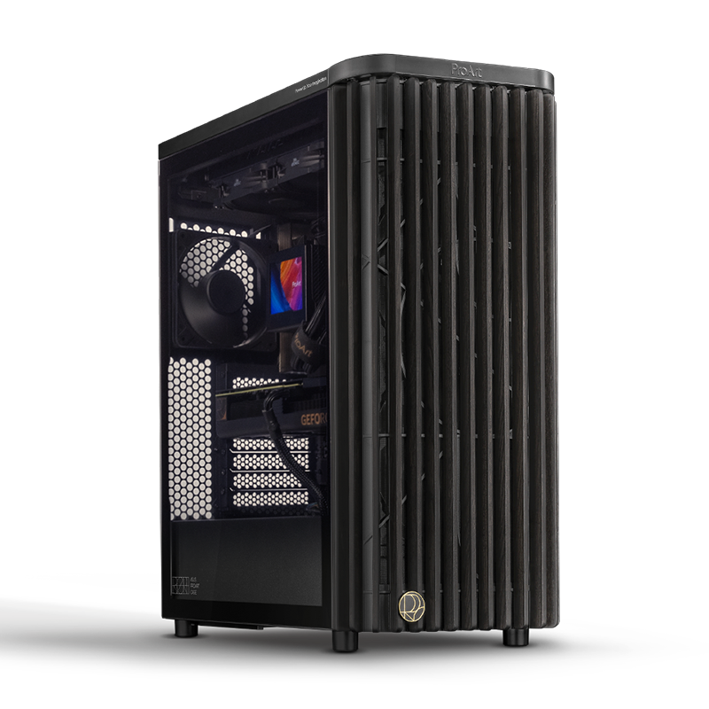 The ProArt PA401 Wood Edition brings artisan wood accents and premium build quality to your desktop setup. Crafted for creators and enthusiasts, this PC case blends natural wood aesthetics with modern architecture and a tempered glass side panel to showcase your components.